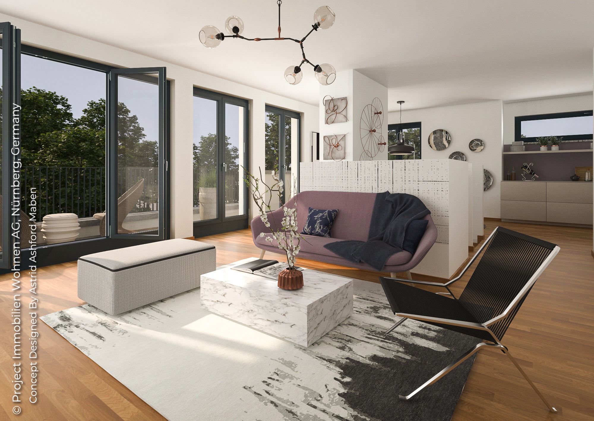 Upscale Condominiums in the prestigious location of Steglitz-Zehlendorf district.Clean uncluttered Nordic Style Interiors with muted tones with accents of Rose Gold and Lilac.