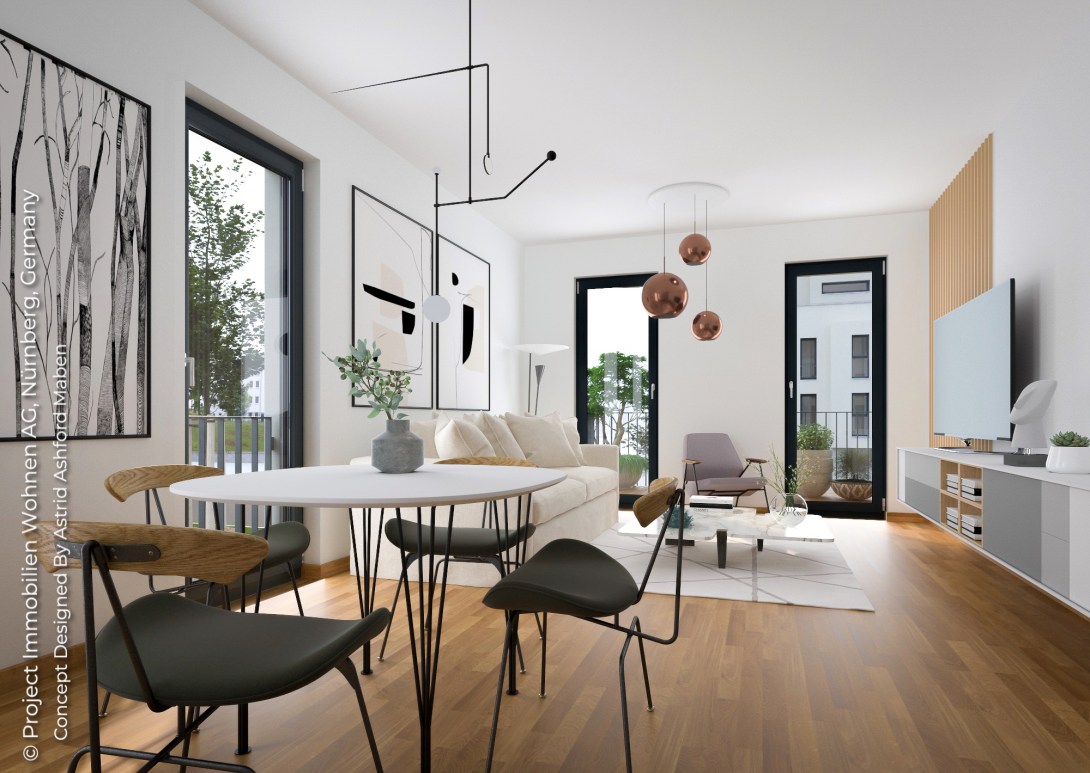 Upscale Condominiums in the prestigious location of Steglitz-Zehlendorf district.Clean uncluttered Nordic Style Interiors with muted tones with accents of Rose Gold and Lilac.